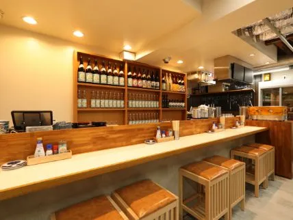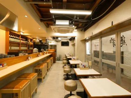 酒場として気軽さを感じる立ち飲みの見える外観で女性でも家族でも入りやすい明るく清潔感ある店内です。